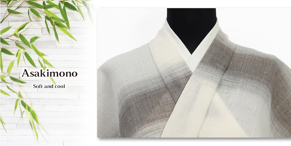 軽やかに涼しい麻縮みの風合いは夏着物としても、浴衣としても。