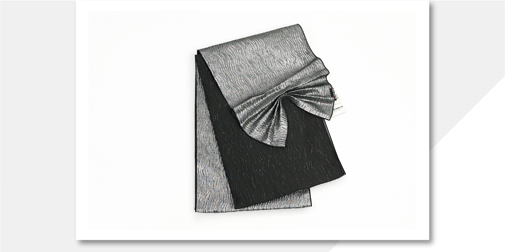 Rumi Rock (ルミロック) ひとえ八寸帯(兵児帯) シワ兵児 シルバー×ブラック